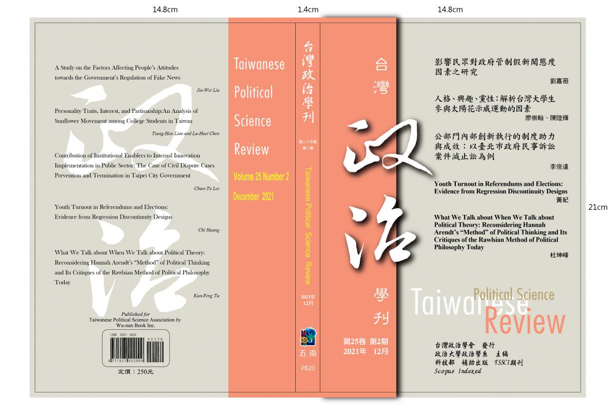 The Taiwanese Political Science Review (TPSR) is the journal published by the Taiwanese Political Science Association (TPSA). It has been edited by a group of scholars who have outstanding academic performance. They devote themselves to maintaining rigorous reviewing and editing practices. Through these efforts, we can not only enhance the research vigor in the political science field and demonstrate the high quality of research by the scholars in Taiwan, but also establish a rigorous paradigm for academic journals. With the breakdown of authoritarian rule in Taiwan, the combination of freedom to pursue the full-range of political science research and rich materials has resulted in an extraordinary abundance of fruitful academic accomplishments. In order to provide a professional forum for young scholars possessing endless research energy to express their viewpoints, The Taiwanese Political Science Review made its debut in 1995 under the support of Nai-teh Wu, the first president of TPSA. TPSR has published many popular articles and maintained a good academic reputation over the years. According to the survey commissioned by the National Science Council in 2008, which was conducted by professor Cheng-tian Kuo, TPSR is the most influential journal among all the political science journals in Taiwan. This indicates that the professional community holds TPSR in high regard.